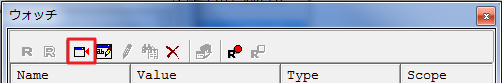 変数を登録しないと変数をウォッチできません。ウォッチウィンドウの“シンボル登録”ボタンを押して、変数名を入力して登録してください。