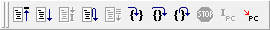 左から CPUリセット、実行、カーソルまで実行、リセットして実行、?、ステップイン、ステップオーバー、ステップアウト、etc…