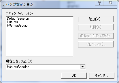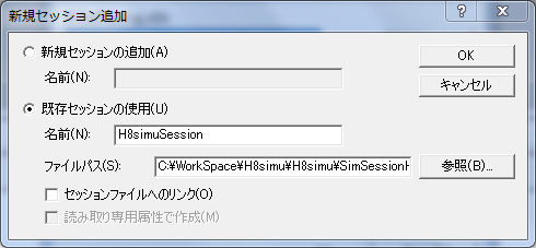 を選んで、名前のところに適当にシミュレータ用のセッション名を入れて(ここではH8simuSession)“OK”押して“OK”