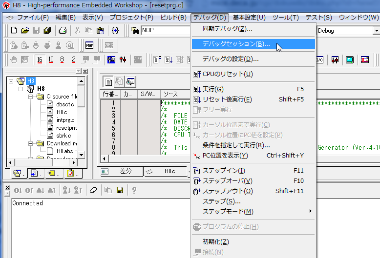 詳しい使い方は HEW シミュレータ で検索してルネサス公式のpdfのマニュアルをダウンロードしてください。