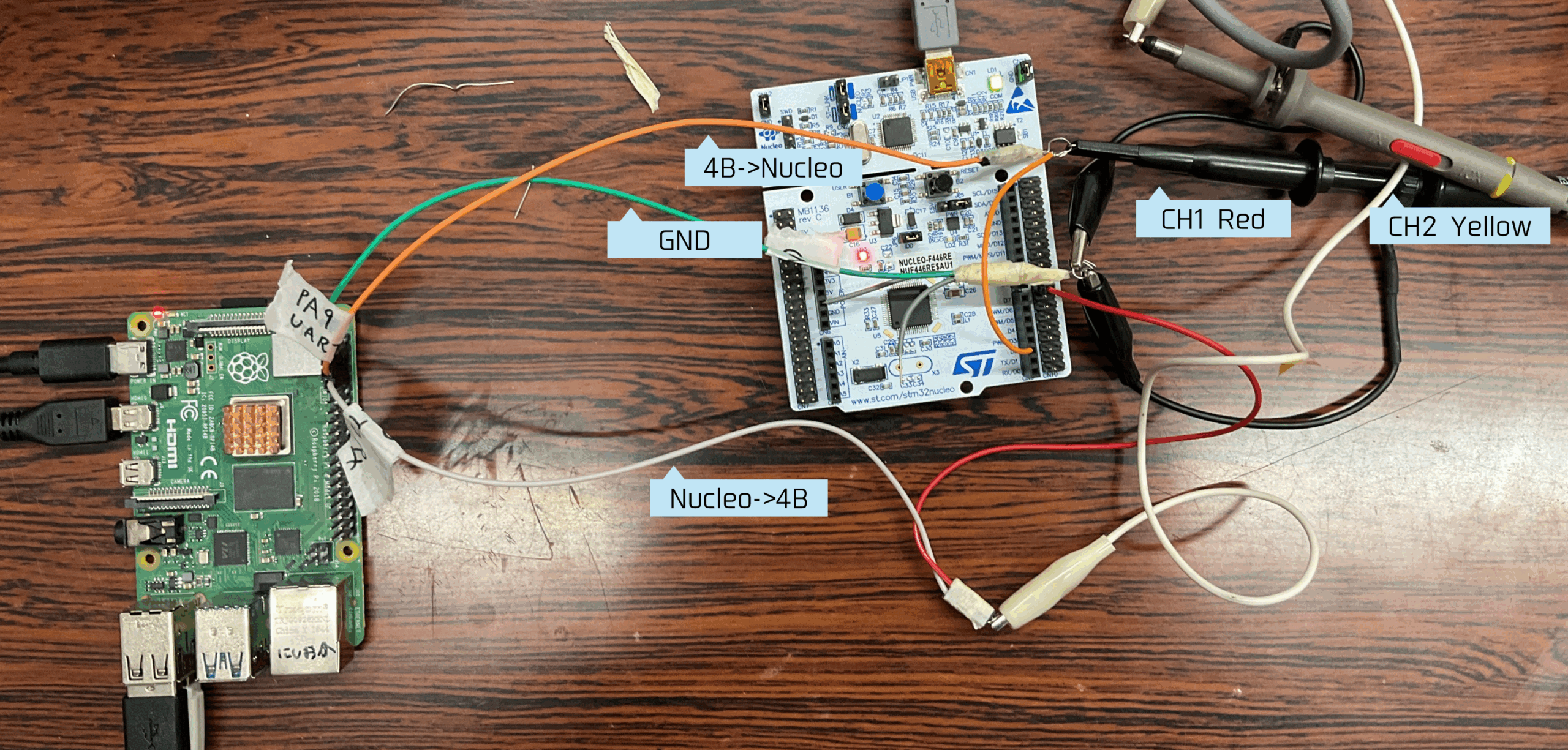 - 本実験の目標は Nucleo とラズベリーパイ Zero の間で双方向通信を実現することである。
