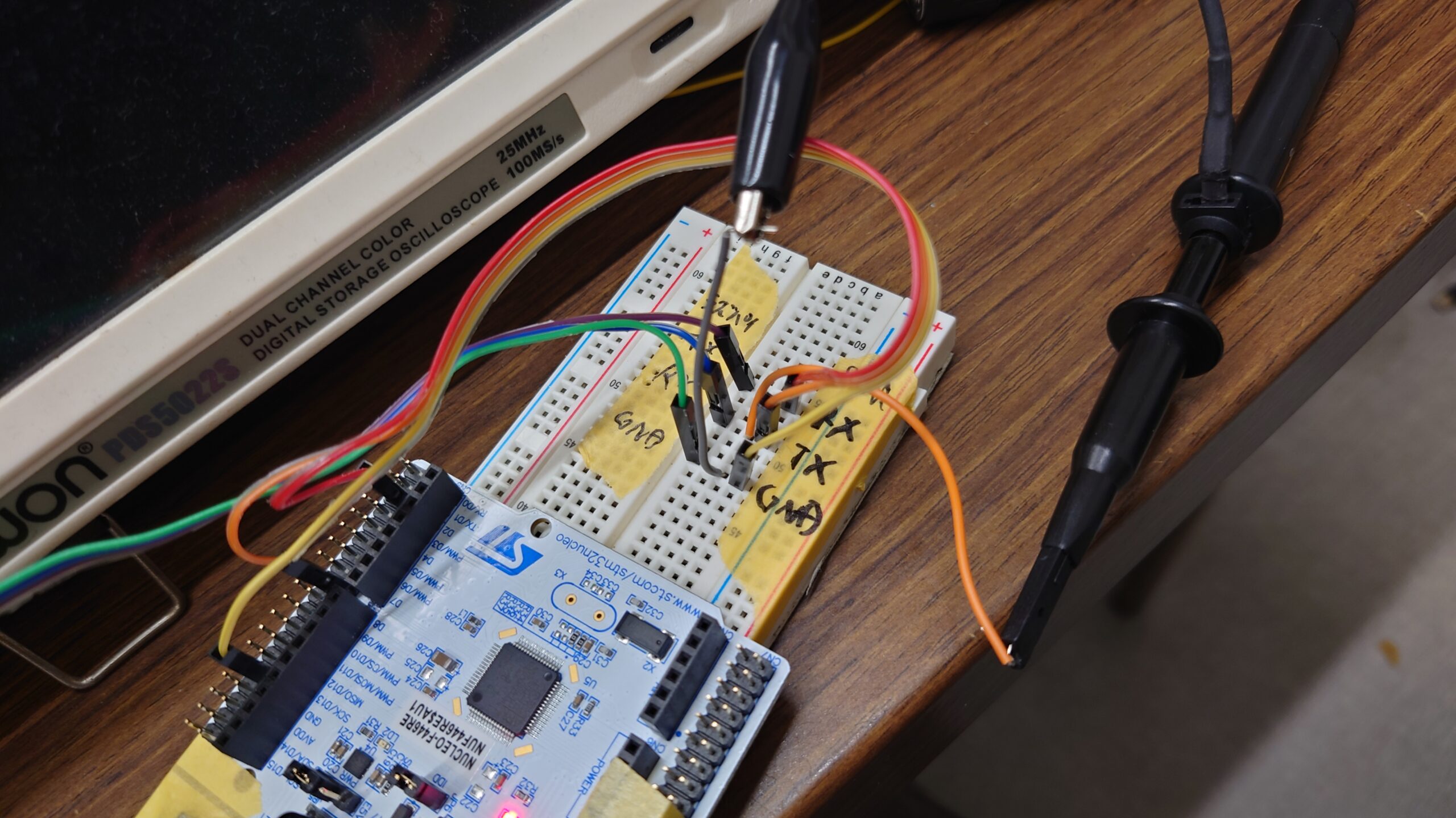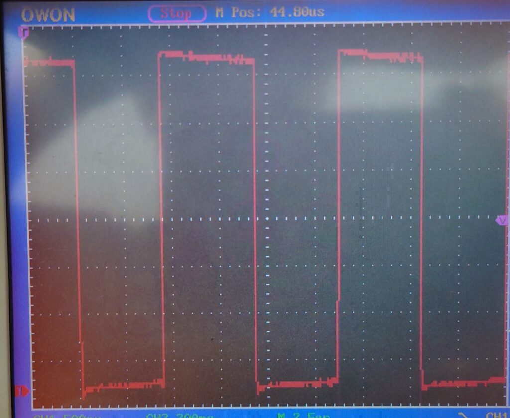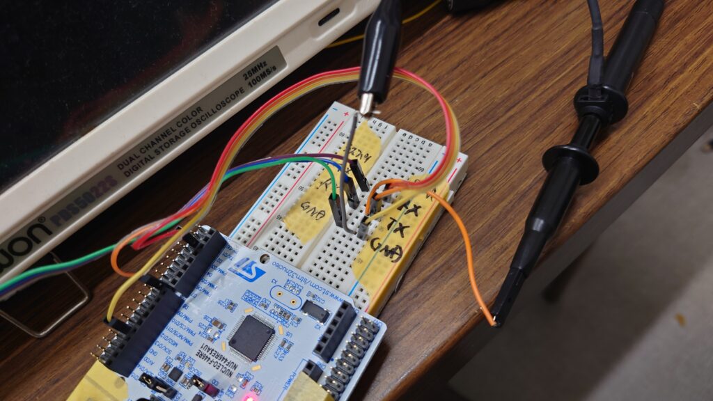 文字化けやスタックなどの問題は一切起きず、問題なく通信できました!オシロスコープで測定された波形も崩れていませんでした(先行実験ではボーレートによってはリンギングが発生していた)。