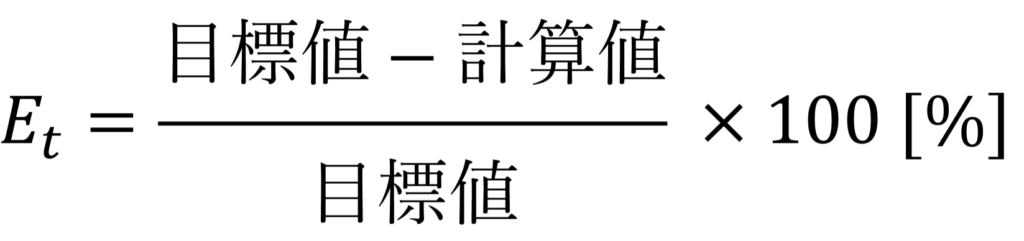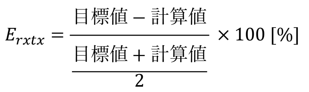 目標とするボーレートと計算値の偏差を目標値と計算値の相加平均で割って表す。